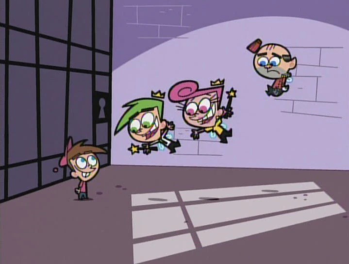Timmy tries various childhood activities, such as mini-golf and riding kiddy rides at the grocery store, but none of them seem to work. Instead, because of his creepy activity, Timmy gets arrested. The reassignment fairy comes back and says that someone has to be assigned to the new kid, but Timmy cries and yells that he wants his mom and dad. Watching Timmy's tantrum, Wanda sticks a thermometer in Timmy's ear to measure his childishness.